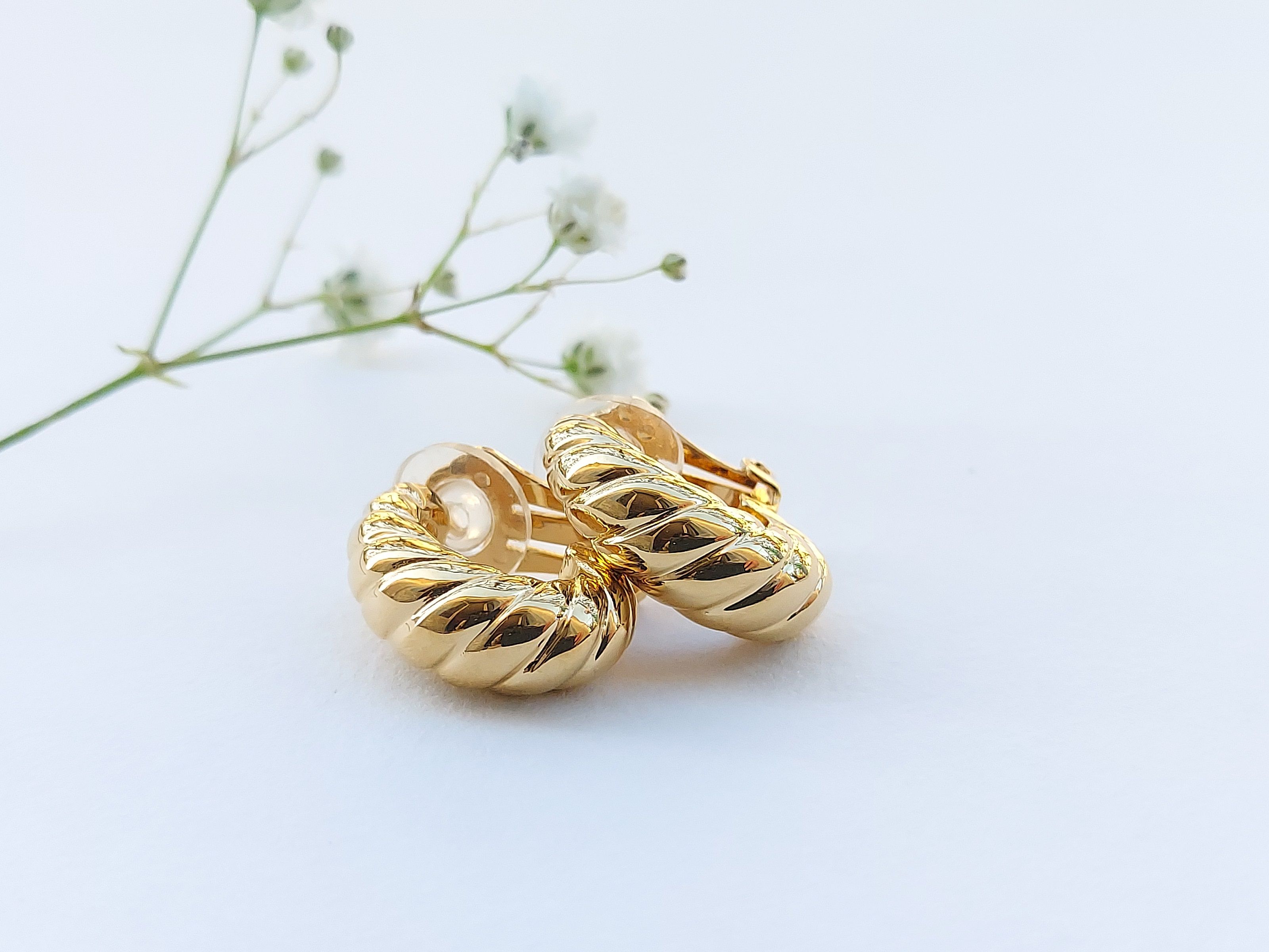 Traveller Clip Oorbellen - 22kt Verguld - Draai-effect- Goudkleurig - 20x7 mm