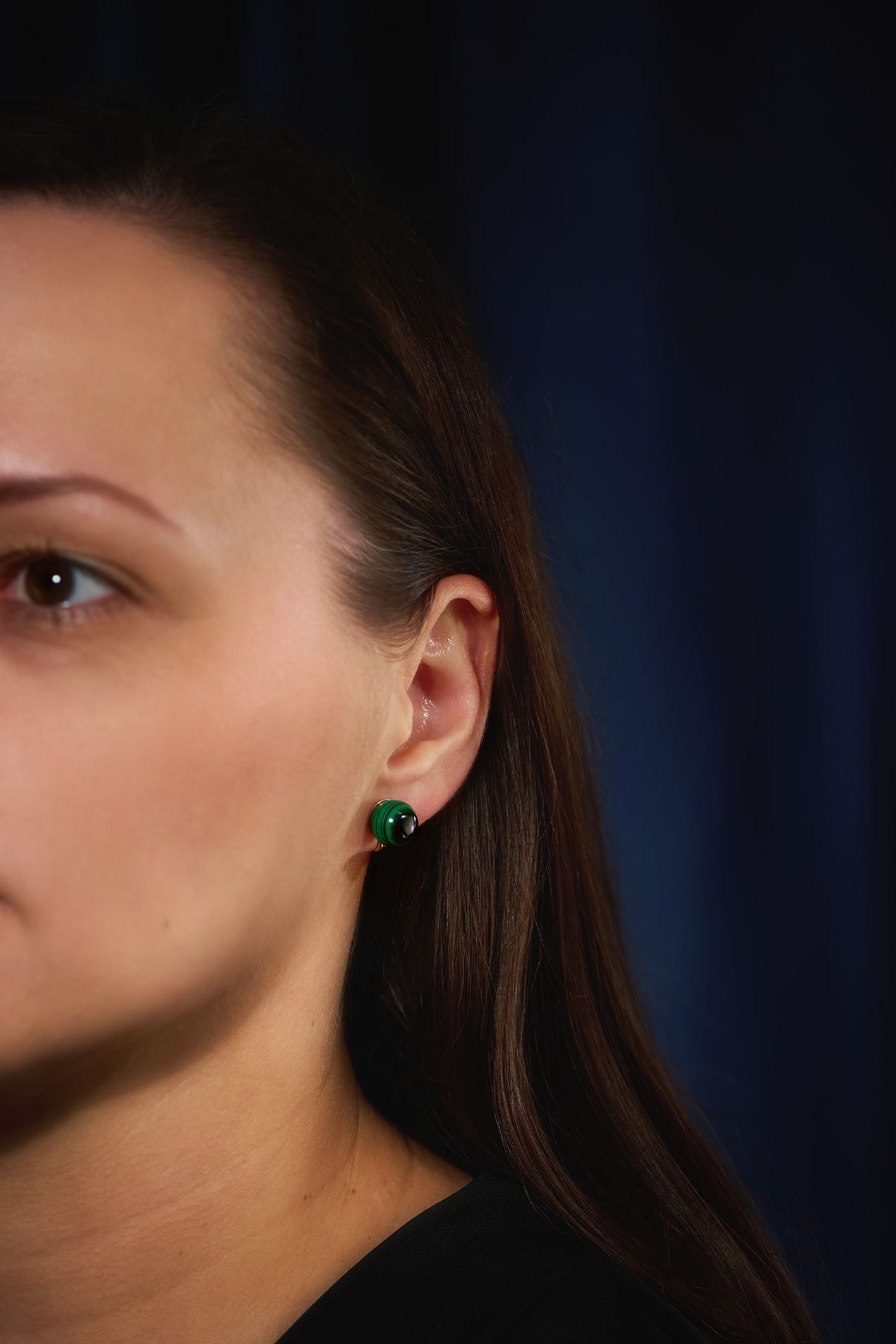 De klassieke ronde oorbel van Traveller combineert harmonie met elegantie. Deze vergulde clips bevatten een echte prachtig gemeleerde Malachietsteen en hebben een diameter van 10 millimeter. Malachiet is een natuurproduct hierdoor kan de kleur op de foto afwijken van de kleur oorbel die u ontvangt, elke steen is uniek en ziet er daardoor een klein beetje anders uit. Dankzij het unieke sluitingssysteem van Traveller zijn deze oorclips zeer comfortabel, licht en veilig om te dragen.