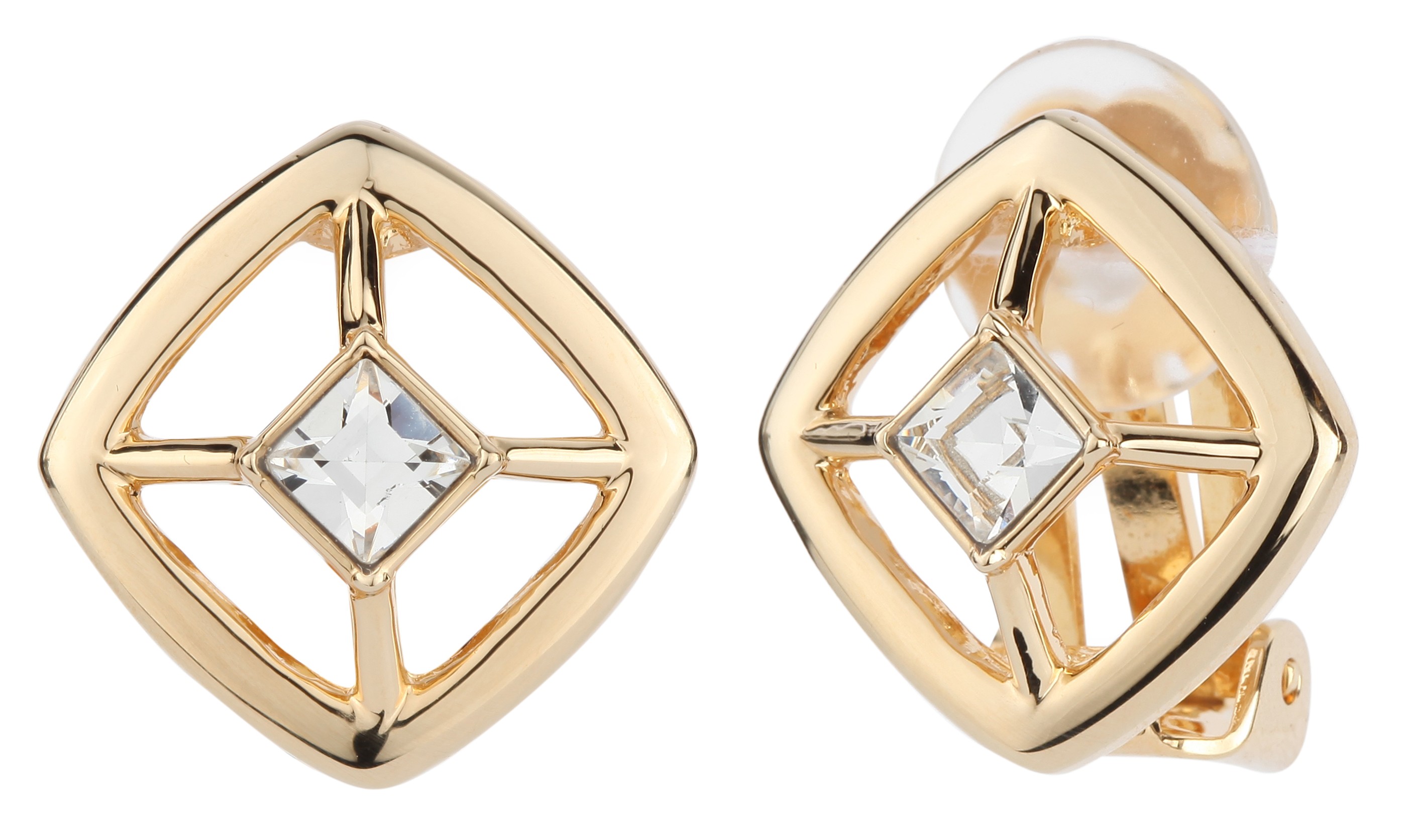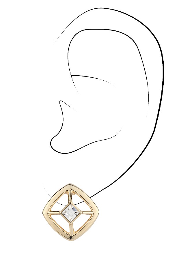 Traveller Clip Oorbellen - 22kt Verguld - Kristal - 4x4 mm - Vierkant - 17x17 mm
