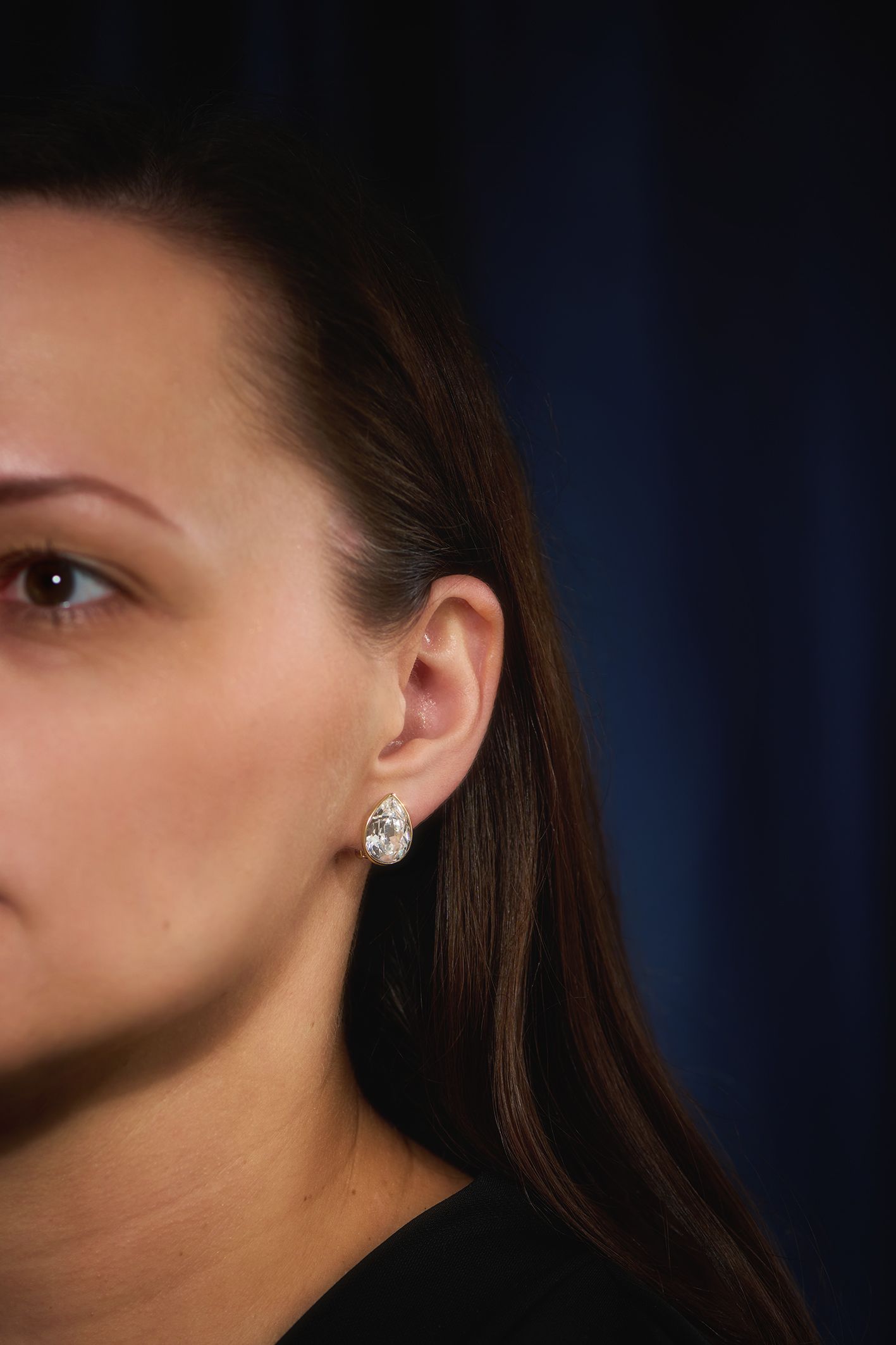 Een paar stralende oorclips van Traveller. Deze 22 karaat vergulde oorbellen bestaan uit een fonkelend kristal van Preciosa met daaromheen een dun, goudkleurig randje. De oorbellen hebben een lengte van 15 millimeter en een breedte van 11 millimeter, ze wegen per stuk slechts 4 gram. Dankzij het unieke sluitingssysteem van Traveller zijn deze oorclips zeer comfortabel, licht en veilig om te dragen.