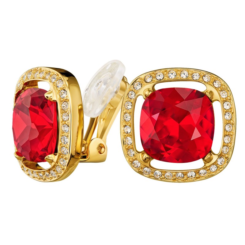 Een paar chique en sprankelende clip oorbellen van Traveller. Rondom het grote rode kristal is een randje aangebracht met kleine kristallen. Deze Preciosa kristallen worden gemaakt van de beste grondstoffen uit de Tsjechische streek en zijn ongeëvenaard in kwaliteit en glans. Elke steen wordt zorgvuldig met de hand bewerkt met eeuwenoude glasblaastechnieken en gemaakt van natuurlijk Boheems zand, dat bekend is om zijn rijkdom aan silica en siliciumoxide. Dankzij het lichte gewicht, 4 gram per stuk, en het unieke sluitingssysteem van Traveller, zijn deze clipoorbellen zeer comfortabel, licht en veilig om te dragen.