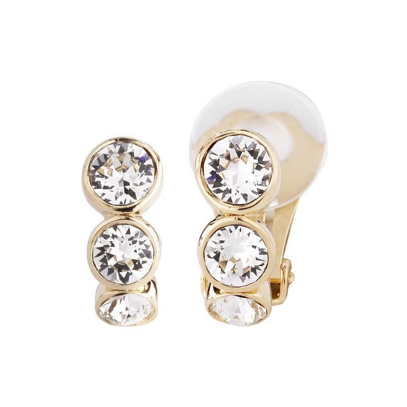 Drie fonkelende kristallen van Preciosa maken deze oorclips van Traveller stralende sieraden die je laten schitteren. De oorbellen zijn volledig verguld met 22 karaat goud (kernmateriaal: metaal), zijn 14 x 6 millimeter groot en wegen per stuk slechts 2 gram. Dankzij het unieke sluitingssysteem van Traveller zijn deze oorclips zeer comfortabel, licht en veilig om te dragen.