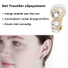Traveller Clip Oorbellen - Goudkleurig - Kristallen - Verguld - 14x6 mm