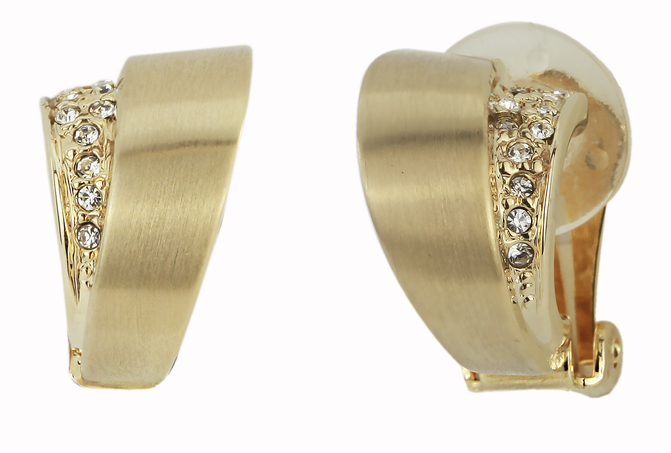 Traveller Clip Oorbellen - Goudkleurig - Preciosa Kristallen - Mat - Verguld - 14x8 mm