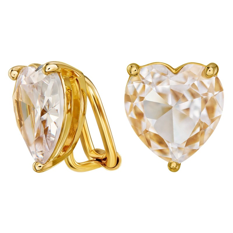 Traveller Clip Oorbellen - Goudkleurig - Zirkonia - Verguld - Hart - 13x12 mm
