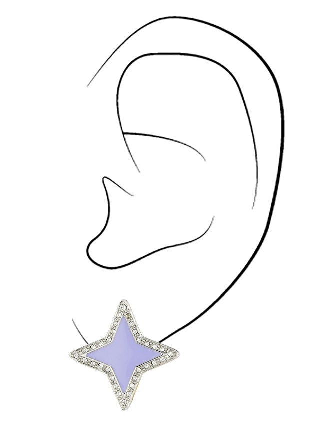 Traveller Clip Oorbellen - Ster - Kristallen - Violet Emaille - Geplatineerd - 20x20mm