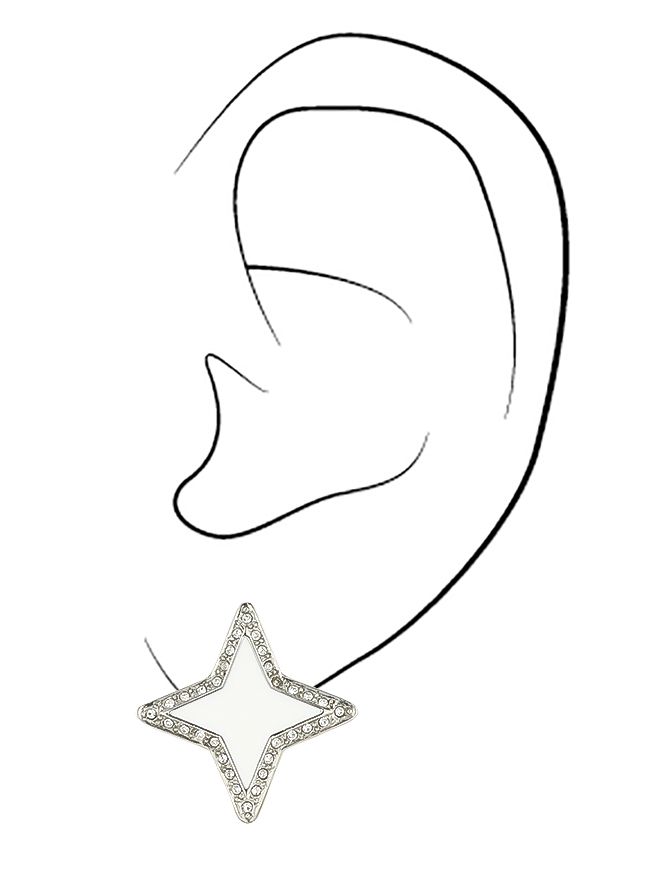 Traveller Clip Oorbellen - Ster - Kristallen - Wit Emaille - Geplatineerd - 20x20mm