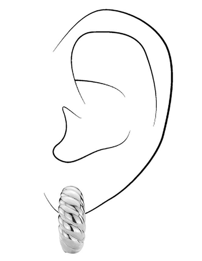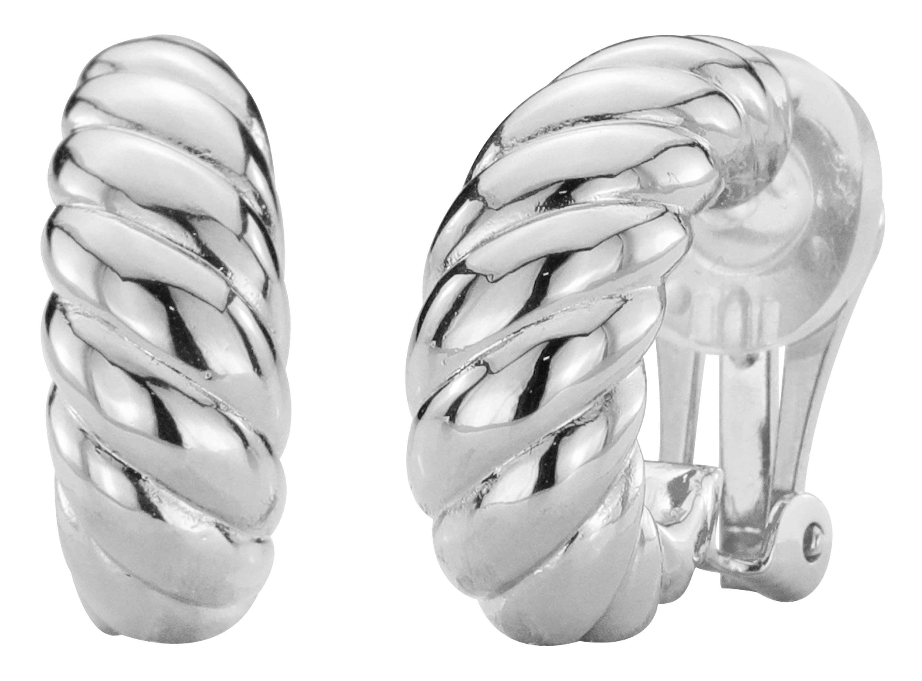 Traveller Clip Oorbellen - Zilverkleurig - Gevlochten Struktuur - Geplatineerd - 20x7 mm