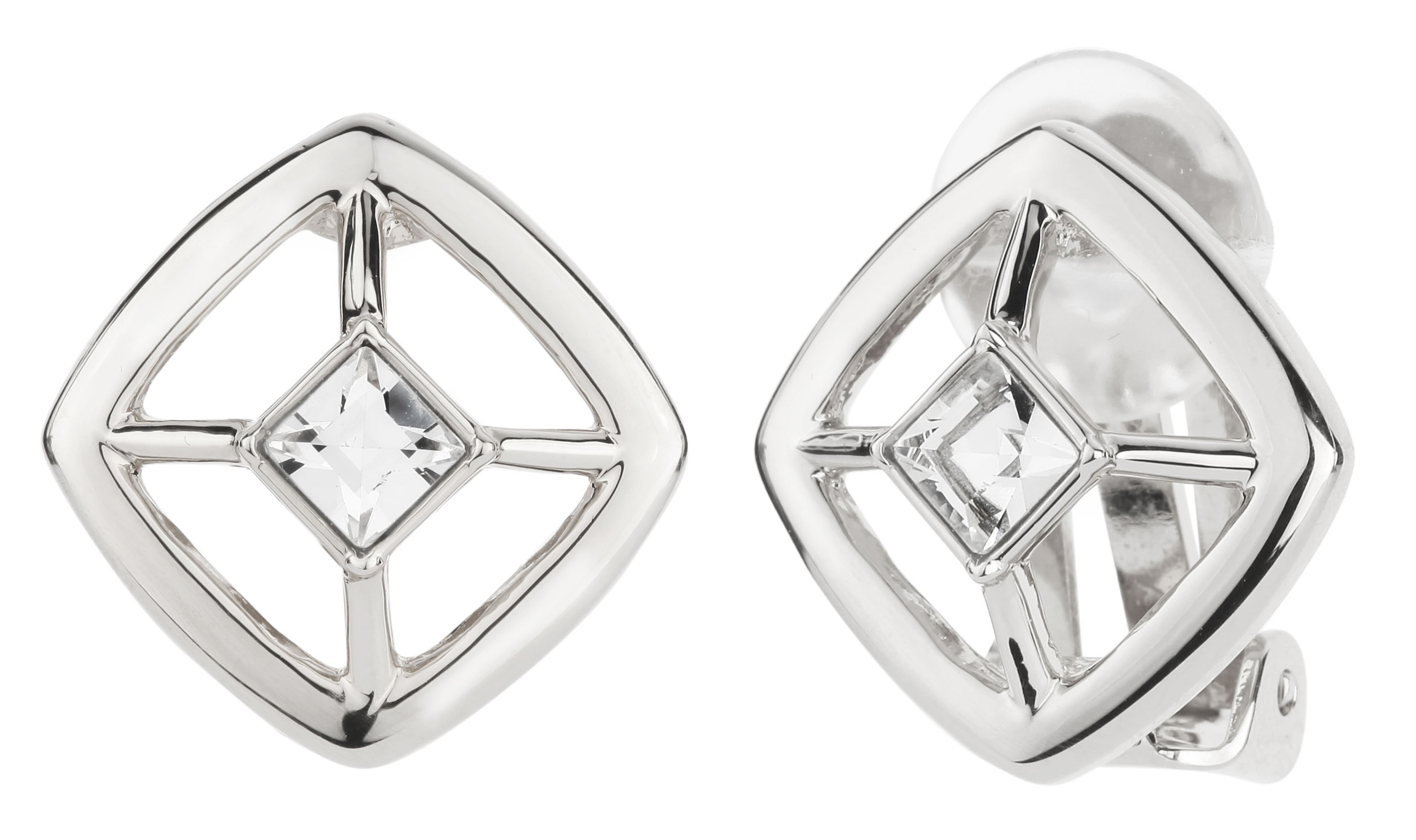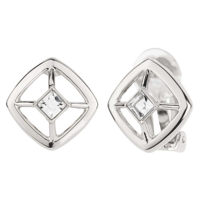 Traveller Clip Oorbellen - Zilverkleurig - Kristal - 4x4mm - Vierkant - 17x17mm - Geplatineerd