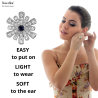 Dit paar prachtige oorbellen van Traveller is een echte eyecatcher. Een blauw, dark indigo, kristal vormt het hart van een bloem. de blaadjes van deze geplatineerde oorclips zijn bezaaid met kristallen van Preciosa. Per stuk wegen de oorbellen maar 2 gram en dankzij het unieke sluitingssysteem van Traveller zijn ze zeer licht, comfortabel en veilig om te dragen.