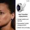 Een paar chique en sprankelende oorclips van Traveller. Rondom het grote donker blauwe kristal is een randje aangebracht met kleine kristallen. Deze Preciosa kristallen worden gemaakt van de beste grondstoffen uit de Tsjechische streek en zijn ongeëvenaard in kwaliteit en glans. Elke steen wordt zorgvuldig met de hand bewerkt met eeuwenoude glasblaastechnieken en gemaakt van natuurlijk Boheems zand, dat bekend is om zijn rijkdom aan silica en siliciumoxide. Dankzij het lichte gewicht, 4 gram per stuk, en het unieke sluitingssysteem van Traveller, zijn deze oorclips zeer comfortabel, licht en veilig om te dragen.