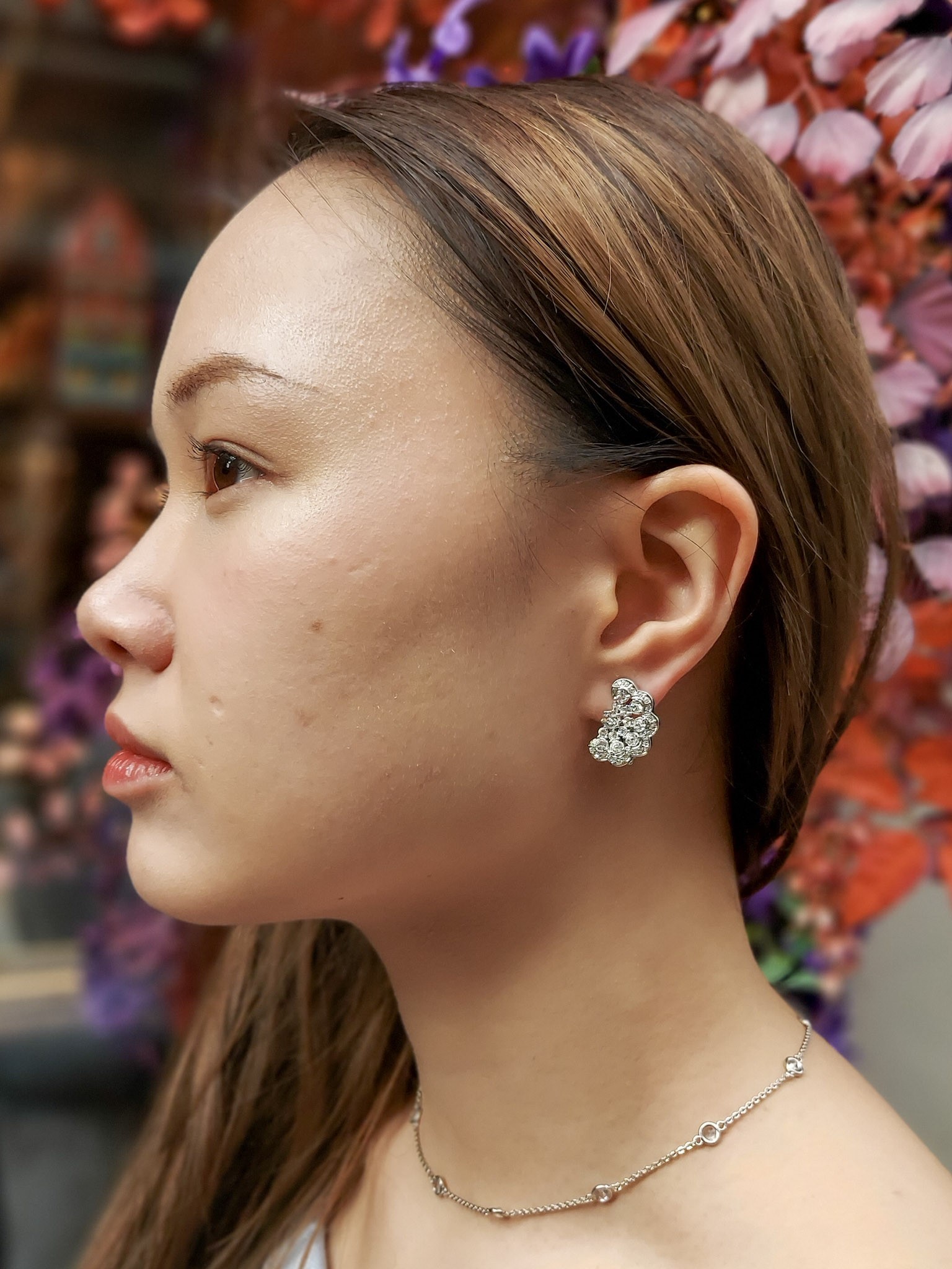 Traveller Clip Oorbellen - Zilverkleurig - Kristal - Bloem - Geplatineerd - 20x12 mm