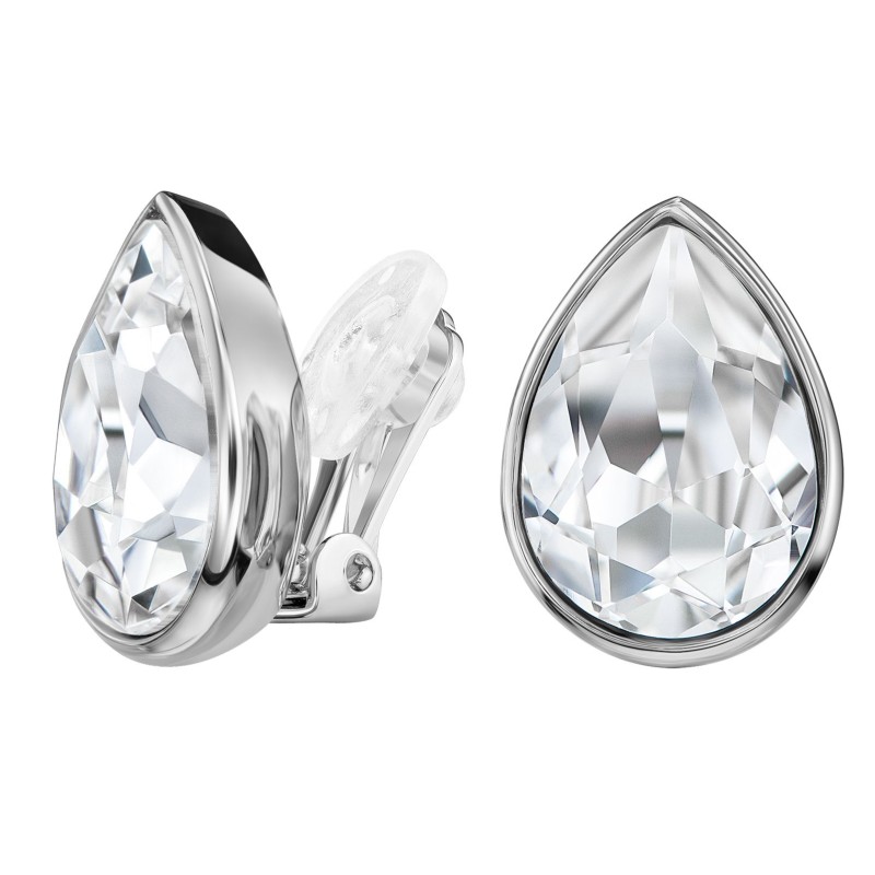 Traveller Clip Oorbellen - Zilverkleurig - Kristal - Druppel - Geplatineerd - 15x11 mm