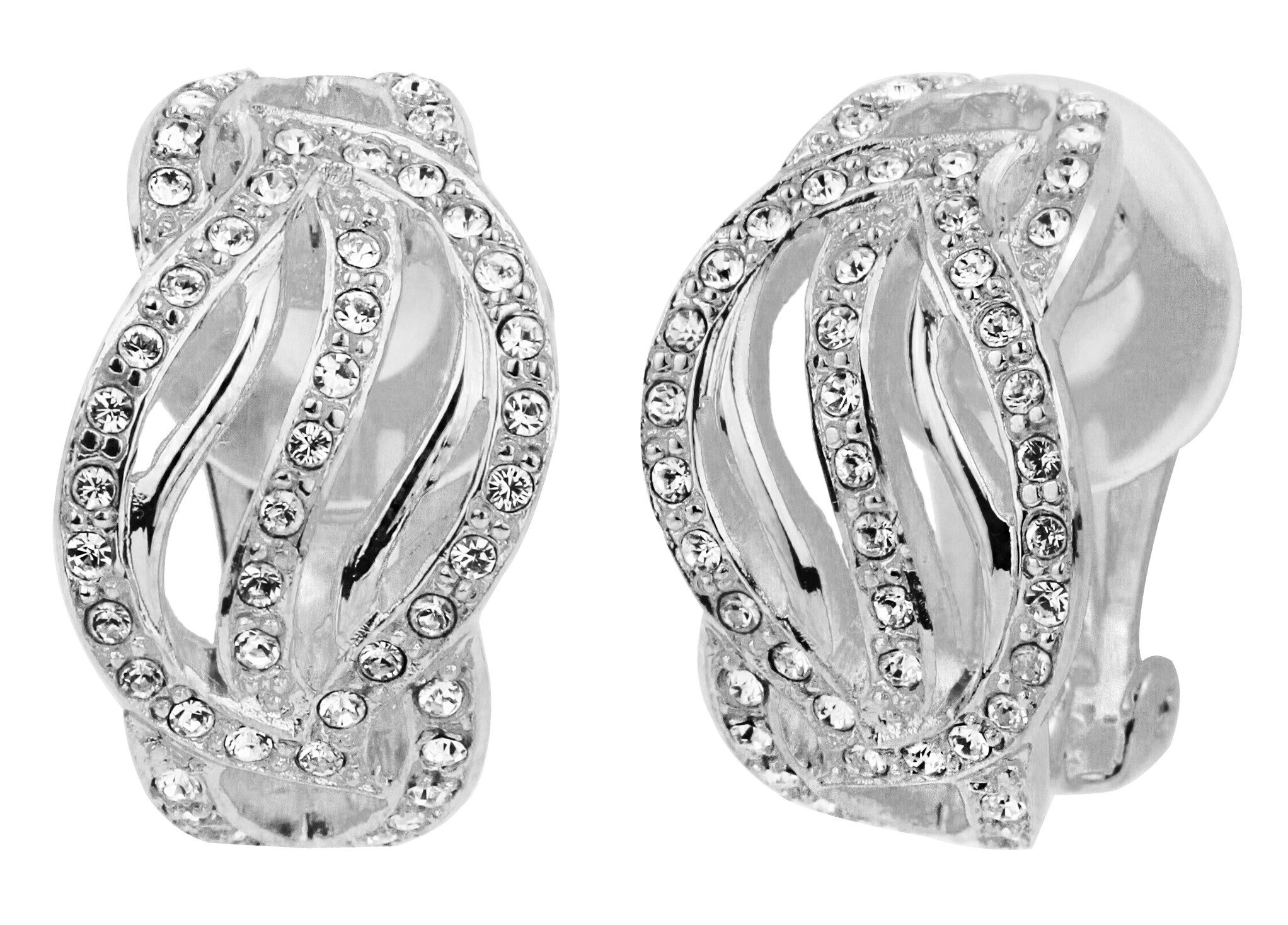 Traveller Clip Oorbellen - Zilverkleurig - Kristallen - Geplatineerd - 18x11 mm