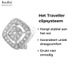 Elegant, modern en schitterend zijn deze oorclips van Traveller in vorm van twee vierkante kaders met afgeronde hoeken. De oorbellen zijn volledig geplatineerd en zijn bezaaid met Preciosa kristallen. Ze wegen ieder slechts 2,5 gram en hebben een formaat van 17x17 millimeter. Dankzij het unieke sluitingssysteem van Traveller zijn deze oorclips zeer comfortabel, licht en veilig om te dragen.