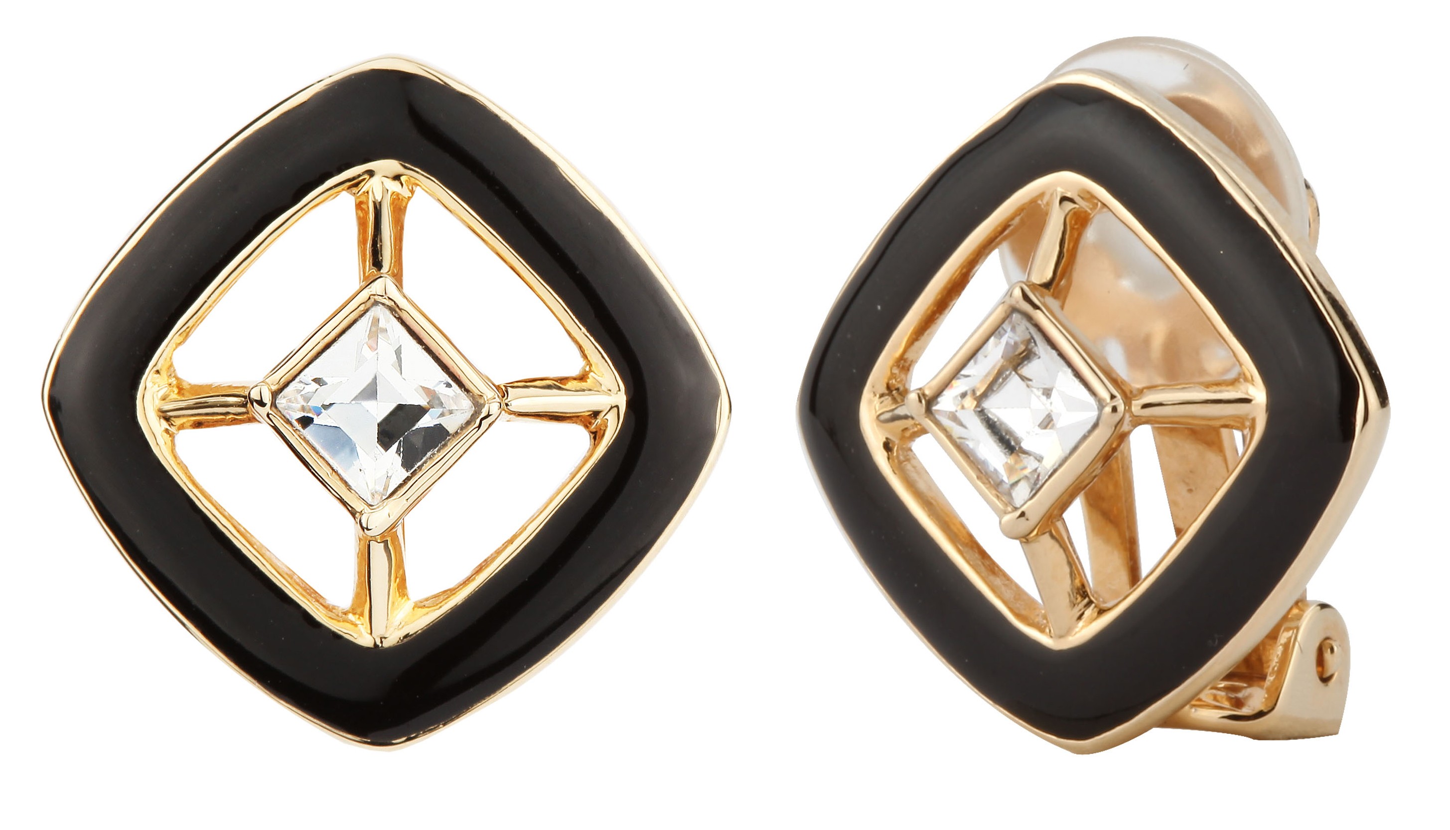 Schitter met deze oorclips van Traveller! De 22ct vergulde oorbellen hebben een modern design: In het midden is een vierkant Swarovski kristal van 4 x 4 millimeter, daaromheen een met zwart gevulde rand. De oorbellen zijn 17 x 17 millimeter groot en wegen per stuk 2,5 gram. Dankzij het unieke sluitingssysteem van Traveller zijn deze oorclips zeer comfortabel, licht en veilig om te dragen.