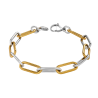 Klassiek chique gecombineerd met modieus opvallend is wat deze armband van Traveller is! De edelstalen armband bestaat uit grote zilver- en goudkleurige schakels (20 x 8 millimeter) die om en om in elkaar hangen. De armband is 21 centimeter lang en weegt zo'n 11 gram.
