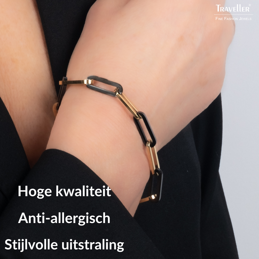Traveller Armband Dames - Bicolor - Goud & Zwart - Schakels - Edelstaal - Verguld - 21 cm