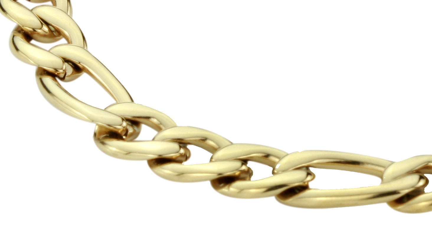 In dit design is er een moderne twist aan de klassieke schakelarmband gegeven. De goudkleurige armband van Traveller bestaat uit schakels in twee verschillende vormen, wat voor een speels chique effect zorgt. Het sieraad is 19 cm lang en weegt 15 gram. Met de bijpassende ketting maak je de look helemaal compleet!