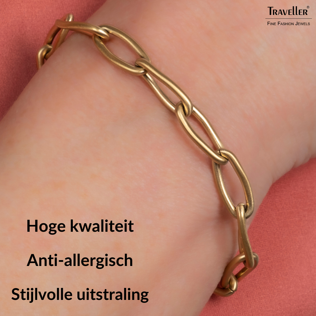 Traveller Armband Dames - Edelstaal - Verguld - Mat - Schakels - 21 cm