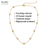 Subtiel, klassiek en stralend. Dat is wat deze ketting van Traveller is. Het goudkleurige collier is volledig verguld met 22 karaat goud en bevat 11 prachtig stralende zirkonia. De ketting is 38 centimeter lang en heeft 2 verlengstukken van 3 centimeter zodat deze op de gewenste lengte gedragen kan worden, het kan dus aan verschillende kledingstijlen aangepast kan worden. Het collier weegt zo'n 3,5 gram. Maak het helemaal af met de bijpassende armband (157760) en oorhangers (157762)!