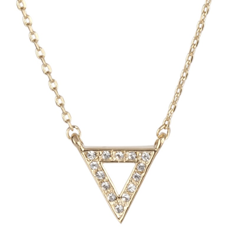 Osira Dames Ketting met Hanger - Goudkleurig - Kristal - Driehoek - 22kt Verguld - 38/41/44 cm