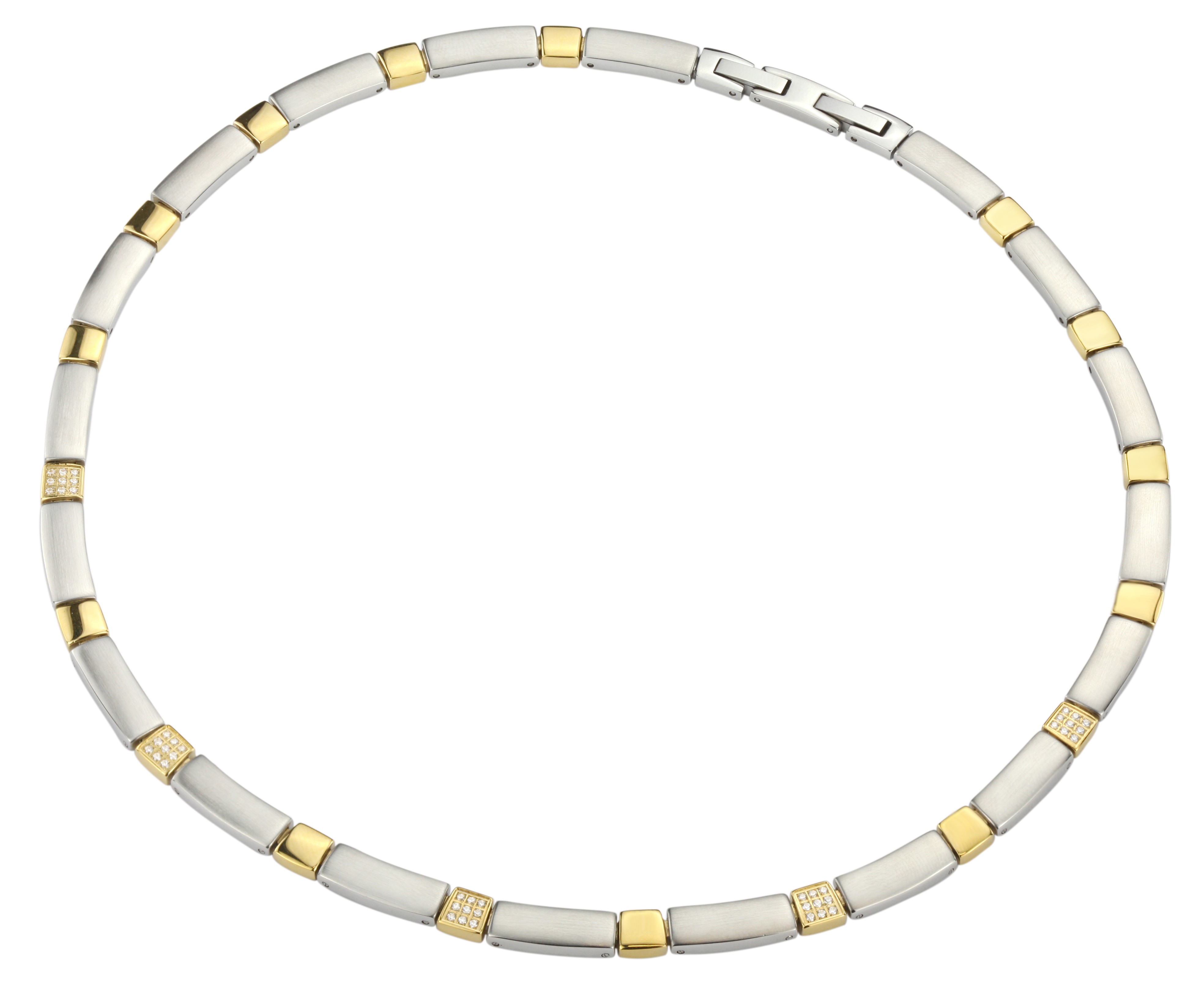 - Bicolor: mat zilverkleurig & verguld (PVD)