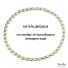 Deze edelstalen ketting van Traveller is liefliijk en speels, hier wordt iedereen gelukkig van! De ketting bestaat uit allemaal kleine, in elkaar geschoven hartjes, om en om goudkleurig en zilverkleurig. De goudkleurige hartjes zijn verguld met 22 karaat goud. De ketting heeft een lengte van 45 centimeter, een breedte van 0,8 centimeter en weegt 64 gram.
