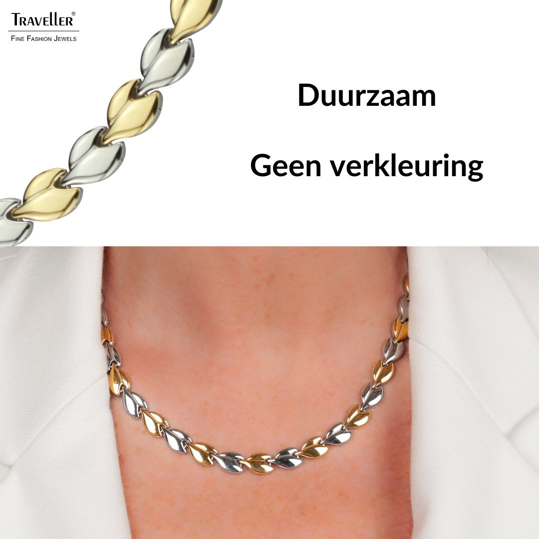 Traveller Dames Ketting - Edelstaal - Goudkleurig & Zilverkleurig - Bicolor - 45 cm - Hartjes