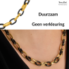 Traveller Dames Ketting - Edelstaal - Verguld & Zwart - Ovale Schakels - 47cm