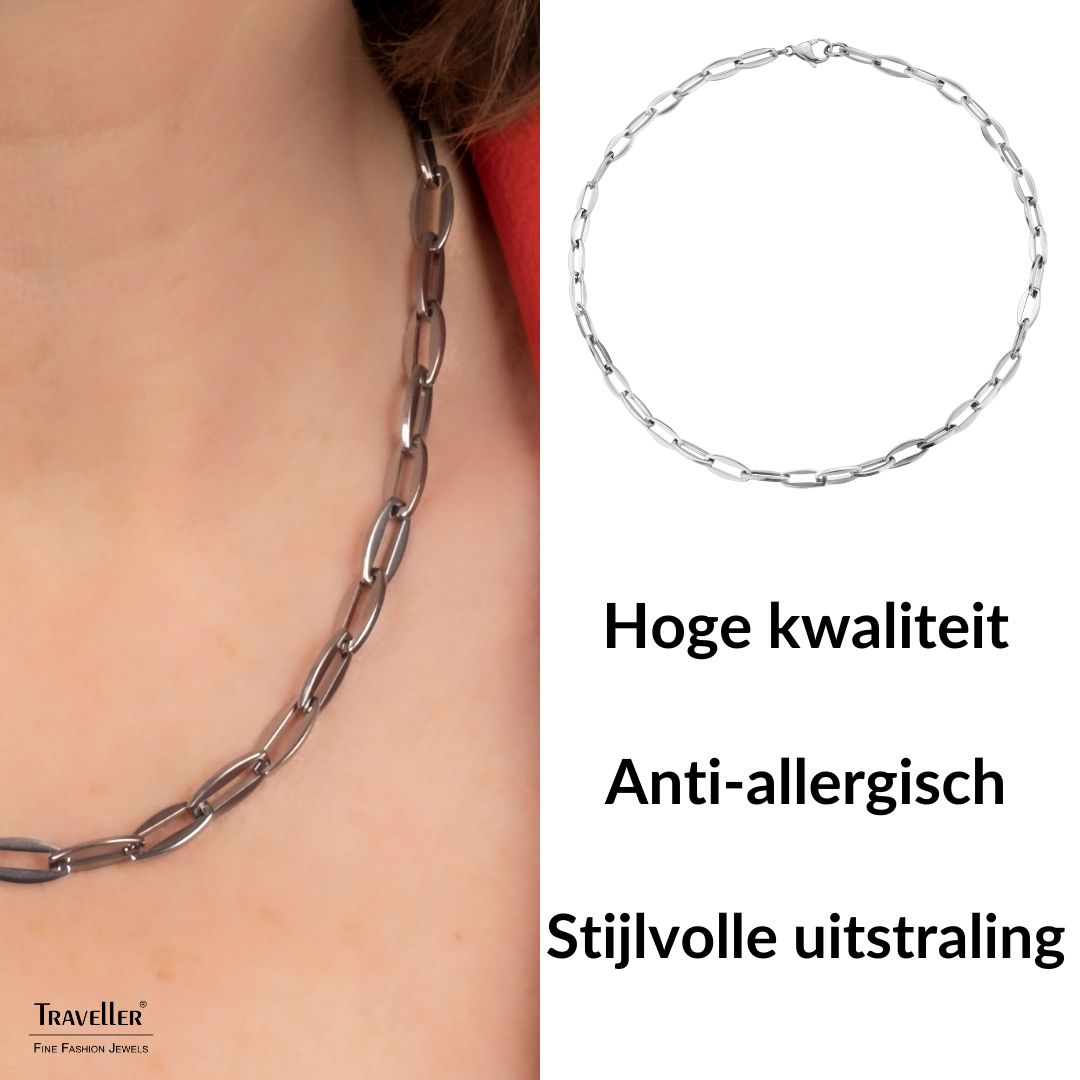 Traveller Dames Ketting - Edelstaal - Zilverkleurig - Schakels - 6 mm - 45 cm lang