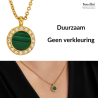 Traveller Dames Ketting met Hanger - 22kt Verguld - Echt Malachiet - Groen - Kristal - Ø 11mm - 40 + 4 + 4 cm