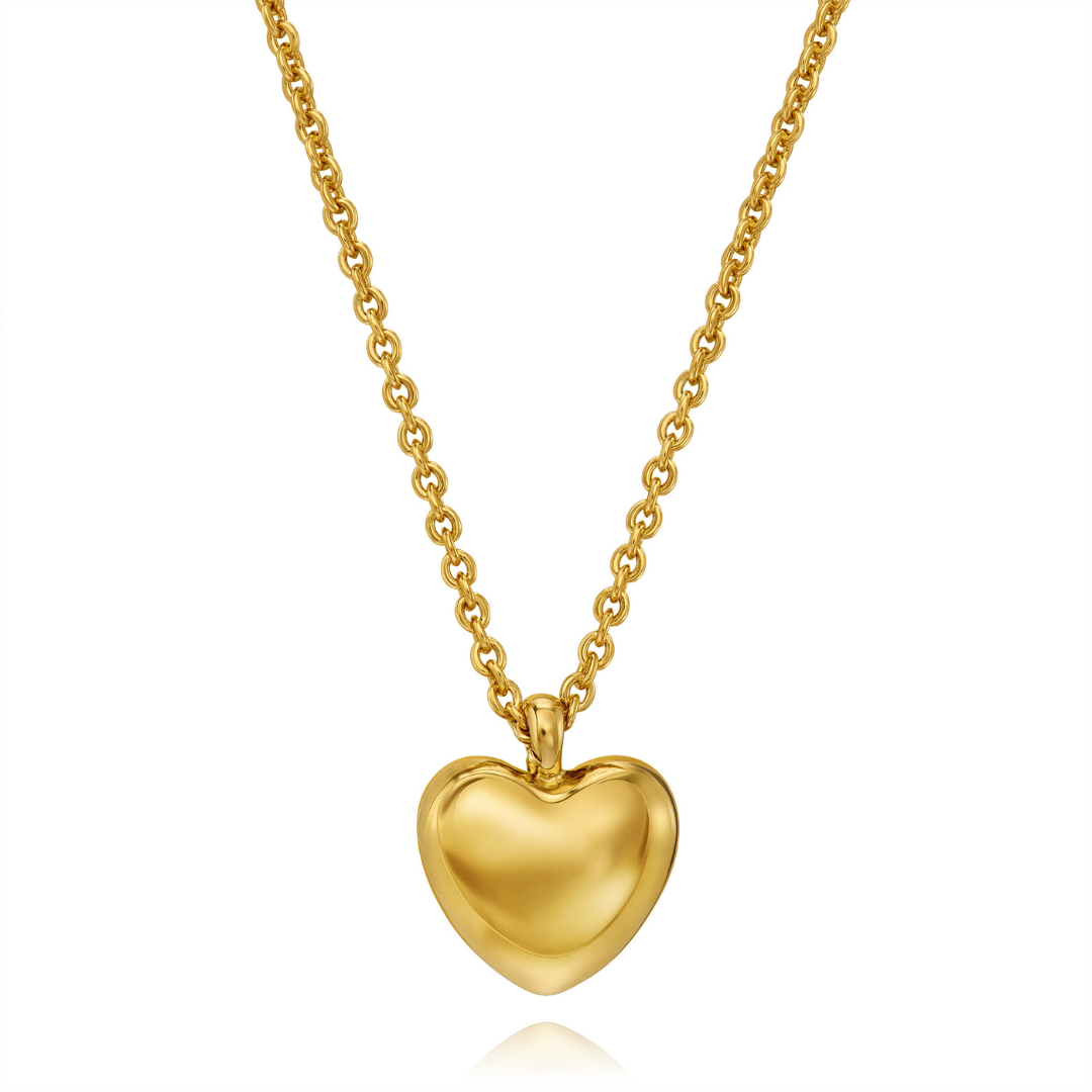 Deze ketting van Traveller is perfect als uitdrukking van liefde - voor een ander of voor jezelf. Aan de goudkleurige verstelbare ketting (38 + 3 + 3 centimeter) hangt een hangertje met een glanzend goudkleurig hartje. Het hangertje is met een diameter van 10 millimeter subtiel maar opvallend, een prachtig liefdessymbool. Het hangertje is net als de ketting met 22 karaat goud verguld, samen weegt dit 3,8 gram.