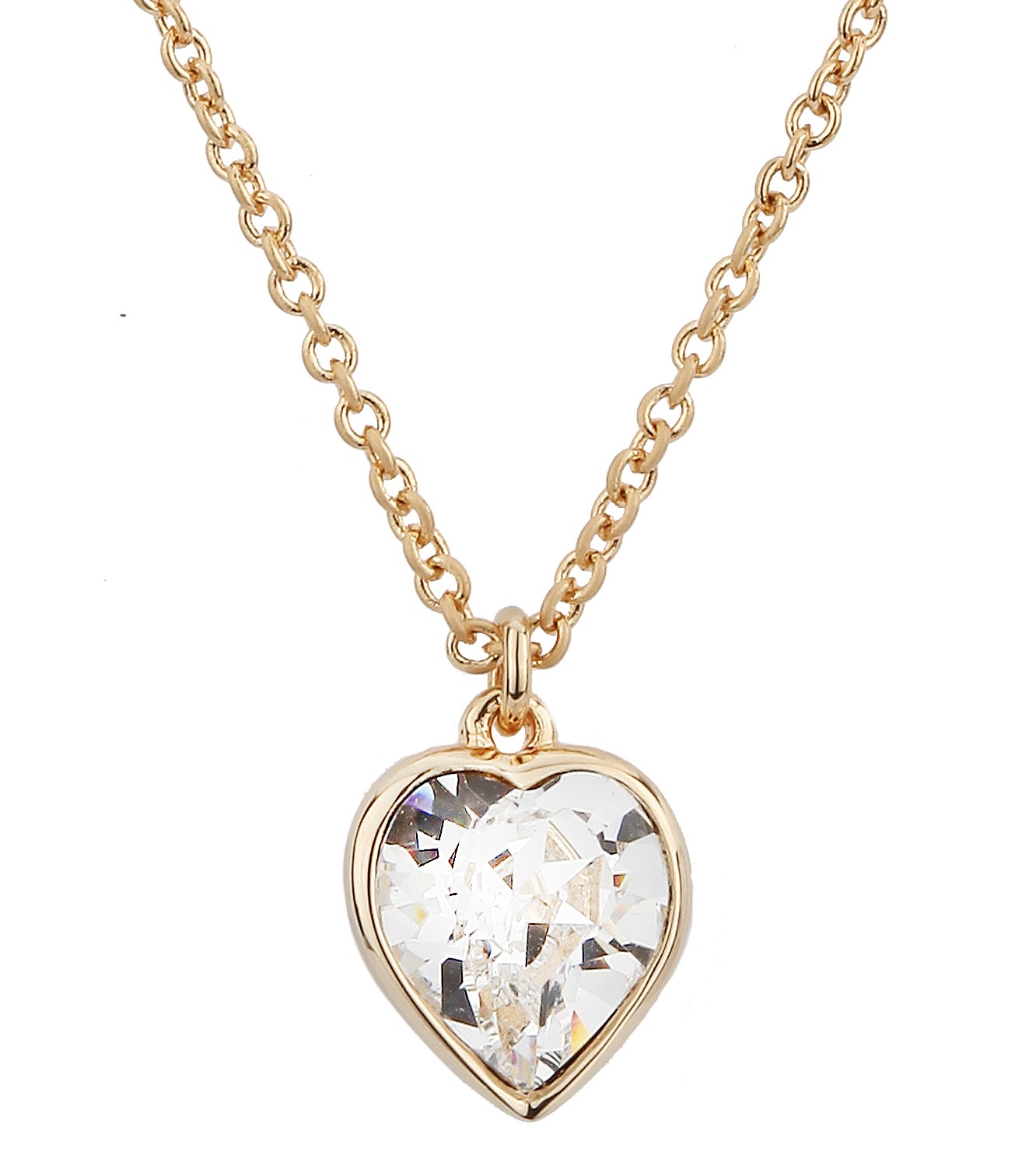 Traveller Dames Ketting met Hanger - 22kt Verguld - Hartje - Swarovski Kristal - 11x10 mm - 38+3+3 cm