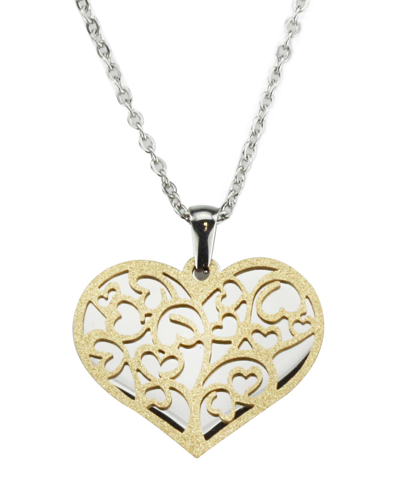 Traveller Dames Ketting met Hanger - Bicolor - Hart - Ø 30mm - Edelstaal - 22kt Verguld - 42+4 cm