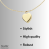 De goudkleurige edelstalen hanger is 2 x 2 centimeter groot en weegt 15 gram. De hanger hangt aan een ketting die verstelbaar is in lengte van 45 tot 50 centimeter. Dit sieraad is verpakt in een geschenkverpakking van milieugecertificeerd materiaal.
