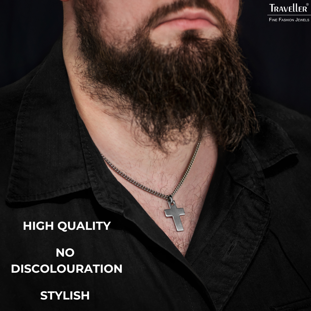 Deze zilverkleurige ketting van Traveller is een stijlvolle accessoire. De ketting is gemaakt van edelstaal en heeft de vorm van een kruis. De hanger meet 3 x 2 centimeter en het snoer is 50 centimeter lang.