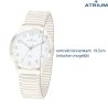 ATRIUM Horloge - Dames - Edelstaal - Goudkleurig - Flexibele Rekband (19,5cm) - 5 Bar - Wit Wijzerblad