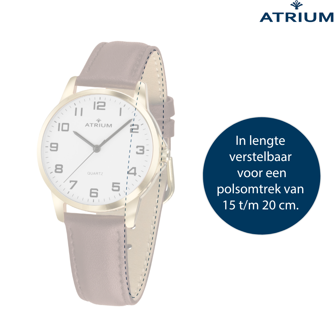 Betaalbaar comfort is wat dit horloge van het Duitse merk ATRIUM biedt. Dankzij de kenmerkende goede afleesbaarheid is het een perfect alledaags accessoire. Het horloge wordt geleverd in een ATRIUM-cadeauverpakking en is daardoor een ideaal presentje voor vrouwen en senioren met een klassieke stijl voor verschillende feestelijke gebeurtenissen, zoals een verjaardag, jubileum of kerstmis.