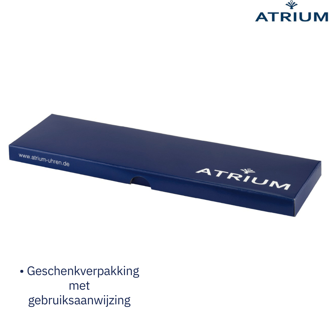 ATRIUM biedt een garantie van 2 jaar vanaf aankoopdatum op het uurwerk en biedt een ongecompliceerde service in Duitsland.