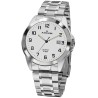De roestvrijstalen horlogekast heeft een diameter van 39 millimeter en is 10 millimeter hoog. Het horloge is goed beschermd tegen water met een mineraalglas en een waterdichtheid van 10 bar. De heldere wijzerplaat is zeer gemakkelijk af te lezen dankzij het contrast van zwarte cijfers, minutenmarkeringen en lichtgevende wijzers op een zuiver witte achtergrond. De geïntegreerde datumweergave is ook een praktisch hulpmiddel in het dagelijks leven. De 18 millimeter brede roestvrijstalen armband heeft bij levering een omtrek van 22 centimeter en kan op elk moment worden ingekort. Het Japanse Miyota kwartsuurwerk zorgt voor een nauwkeurige analoge tijdsaanduiding.