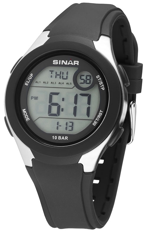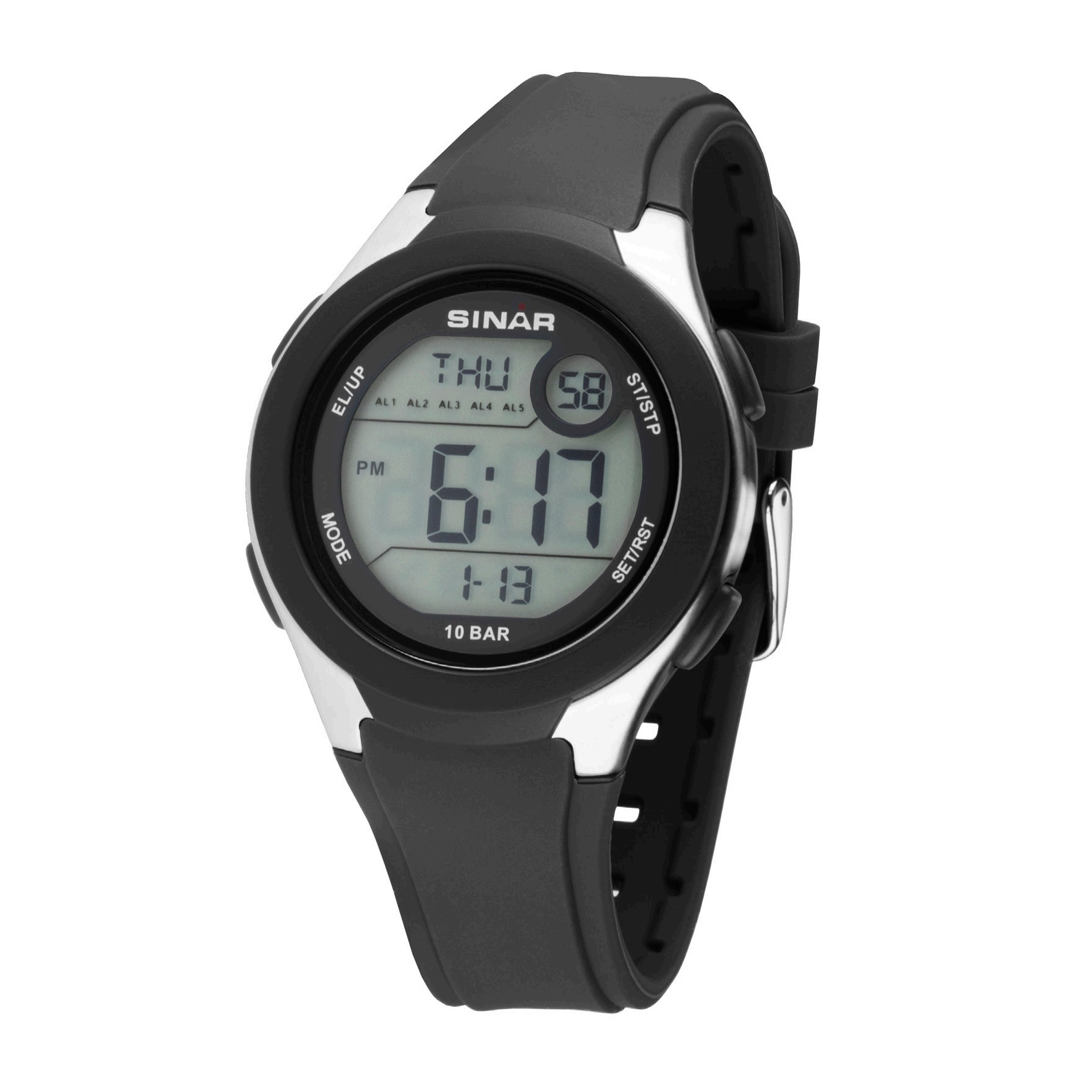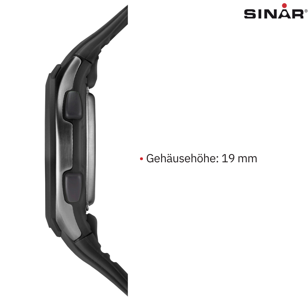 SINAR Digitaal Horloge - Zwart - Verstelbaar Bandje (14,5-21cm) - 10 Bar - 5 Alarmen - Vele Functies - 43 mm