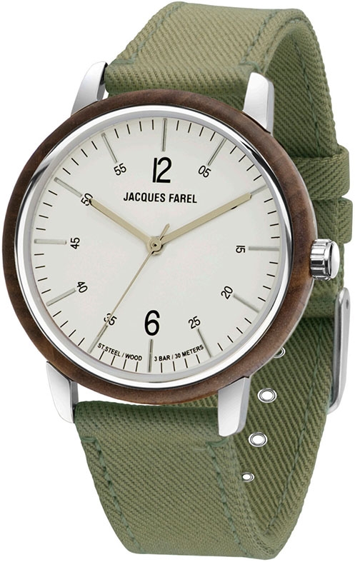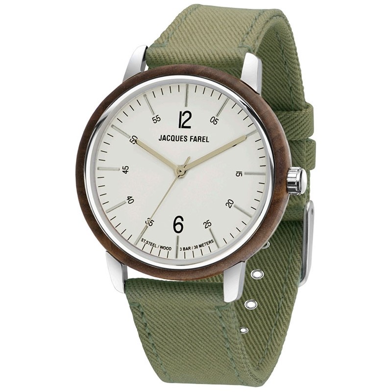 JACQUES FAREL hayfield is geen fast fashion accessoire! Het warme, gladde hout, de zachte, platte en vegan lyocell vezels en het duidelijke cijferblad herinneren je eraan weer eens een stap terug te doen van de alledaagse stress en hectiek.