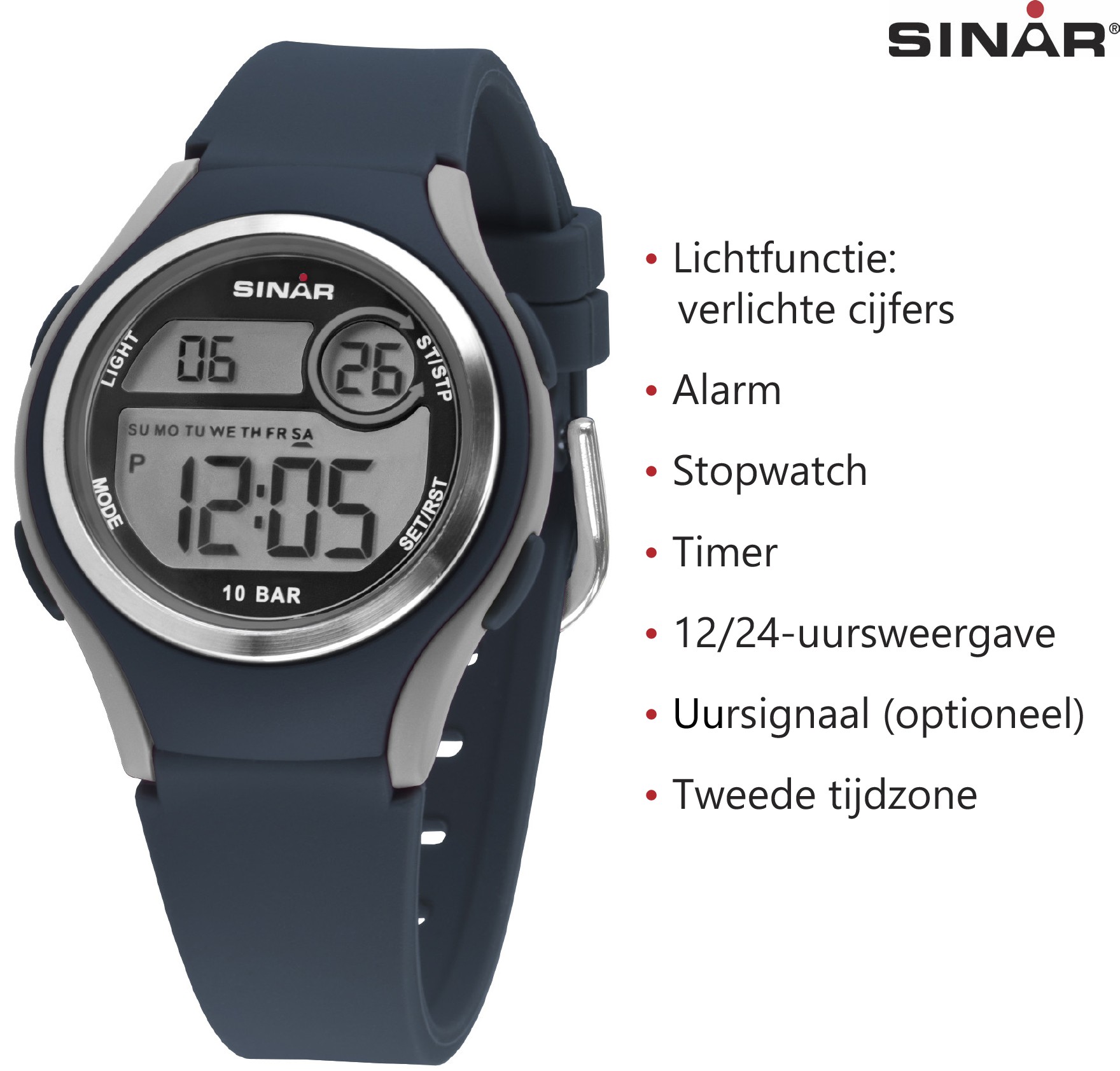 Al meer dan 15 jaar staat het merk SINAR voor sportieve, robuuste en casual horloges - digitaal en analoog. Talrijke functies, een waterdichtheid van 10 bar en geweldige kleurencombinaties inspireren niet alleen sportfans, jongeren, kinderen en tieners - maar ook iedereen die graag functionele horloges combineert met casual outfits.