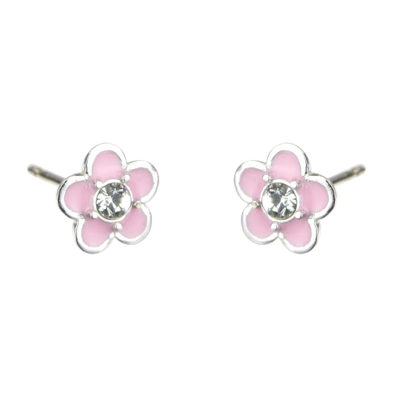 Traveller Kinderoorbellen - Bloem Mala - Meisjes Oorbellen - Sterling Zilver - Roze - Kristallen - Ø 7mm