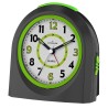 De vrolijke, zwarte wekker van ATRIUM beschikt over een sluimerfunctie en LED-verlichting dat na activering 5 seconden brandt. De duidelijke wijzerplaat met bontgekleurde cijfers en aangegeven minuten maken het lezen van de tijd makkelijker. De geruisloze kwartsklok zorgt voor een ongestoorde nacht slapen.