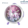 Deze wekker is ideaal voor kleine eenhoorntjes! De harmonisch gecombineerde kleuren en het gedetailleerde cijferblad maken deze wekker van het Duitse merk ATRIUM een echte blikvanger. Grote, witte getallen en een minutenindeling vergemakkelijken het aflezen van de tijd. Dankzij de cirkel bij de cijfers is het alarm goed in te stellen. De stabiele wekker is echt afgestemd op kinderen, heeft geen scherpe randen en is met maar één instelknop eenvoudig te bedienen. Handig zijn ook de licht- en sluimerfunctie. De witte kleurt bij het cijferblad, de knop en voetjes van de wekker zijn paars. Een hippe decoratie in iedere kinderkamer - ideaal voor de basisschoolperiode, om de klok te leren lezen of gewoon als verjaardagscadeautje.