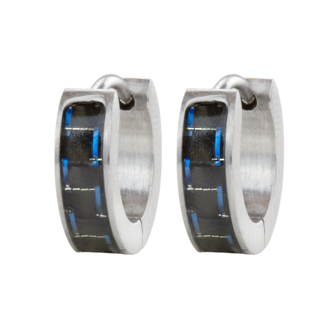 Traveller Oorringen - Heren - Edelstaal - Zwart Carbon - Blauw - 14x4 mm