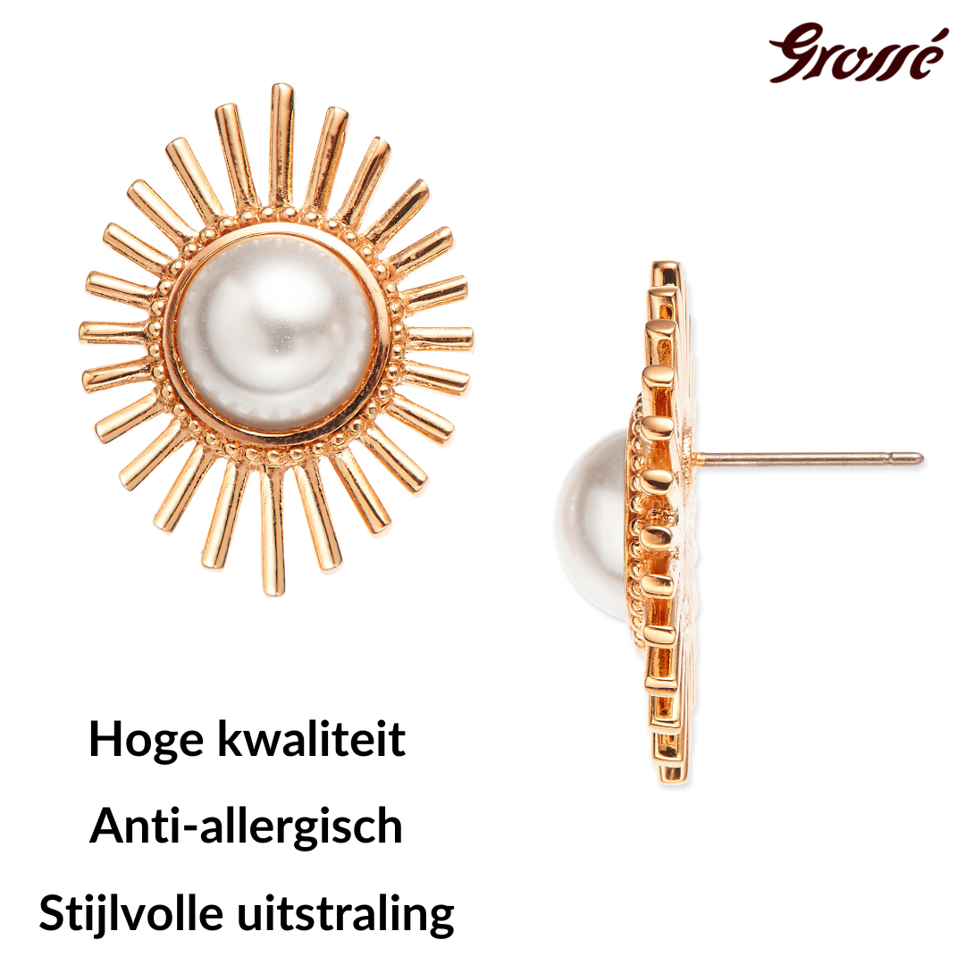 Grossé Oorsteker - Future Floral - Goudkleurig - Parel - Wit - Verguld - 25x20 mm