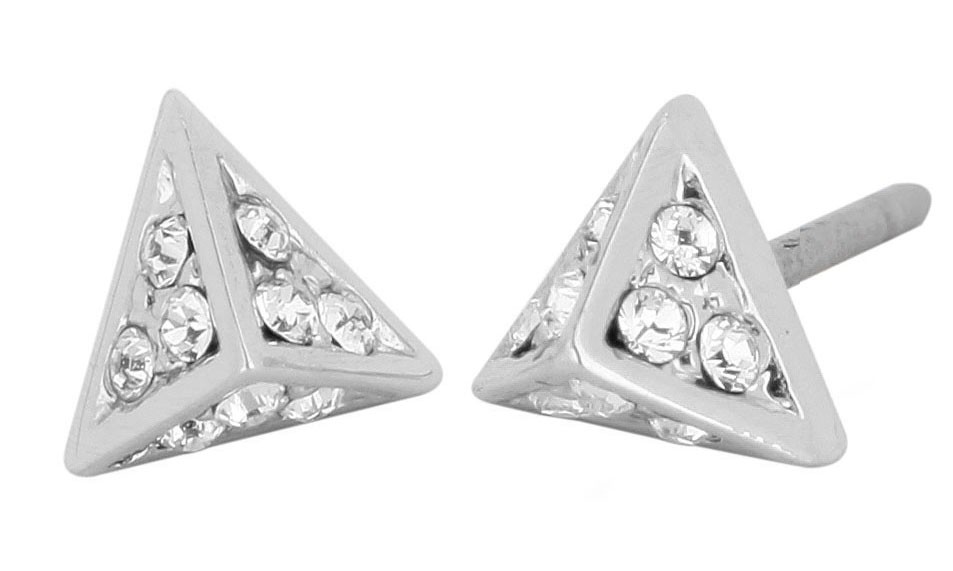 Osira Oorbellen - Zilverkleurig - Kristallen - Piramidevorm - Geplatineerd - Ø 6mm